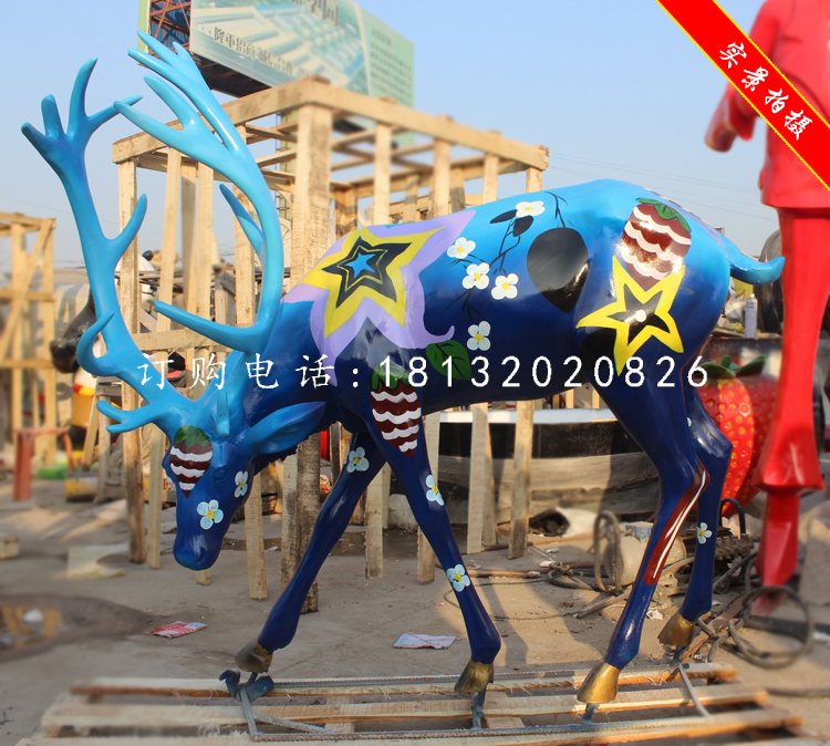 玻璃鋼彩繪馴鹿動(dòng)物雕塑