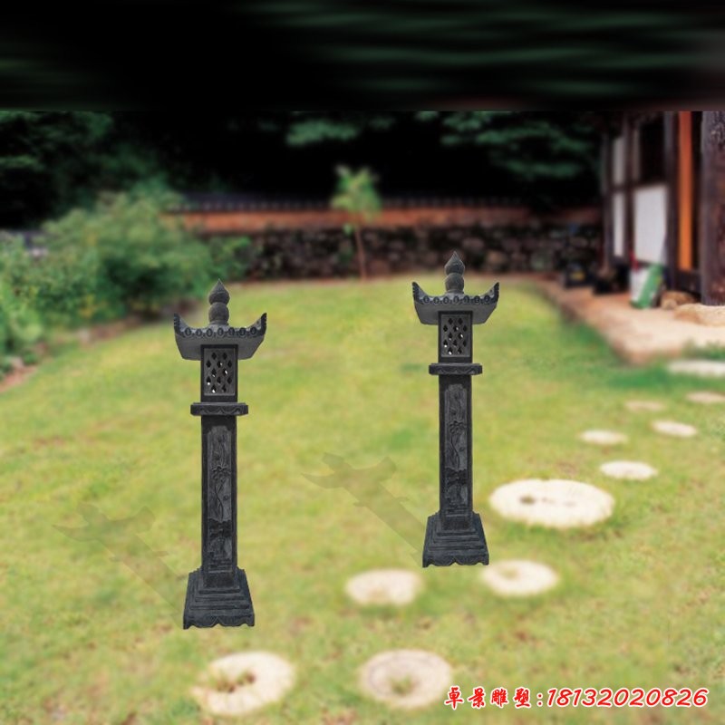 石燈被用于園林、庭院的裝飾始于十六世紀晚期的安土桃山時代.當時由于茶道的大發(fā)展,石燈常被作為茶室的一種露天裝飾物而廣泛進入庭院裝飾。隨著石燈用途的改變,石燈的樣式也就更加多樣化了,例如出現(xiàn)了三腳或四腳的雪見燈籠,同時對竿和笠的部分也給予新的設計,石燈的式樣由模仿進入創(chuàng)新。日本的石燈除了少量用于寺院神社以外,大多數(shù)的石燈是用于庭院、園林裝飾使用。