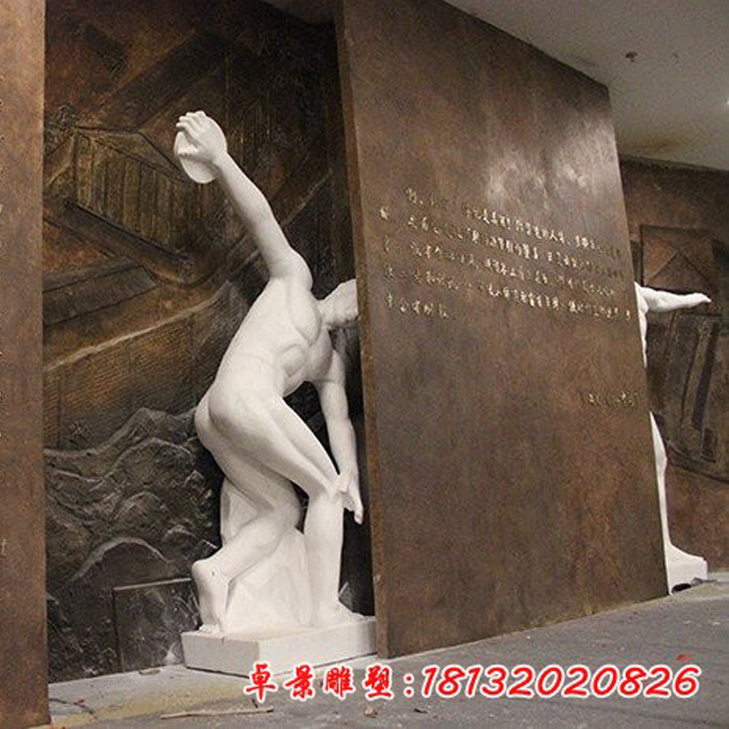 另外一方面,石雕運動人物在其制作過程中,更有利于表現(xiàn)具有張力的、弧形的物體,這是由它的材質(zhì)特征決定的。再加上其制作周期和造價的優(yōu)勢,很快就得到廣泛的應(yīng)用。