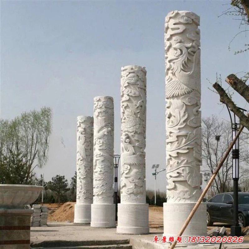 類似這種石雕柱子除了盤龍柱外, 還有石雕文化柱、石雕圖騰柱,石雕華表柱、十二生肖石柱等。這些柱子雕刻結構基本相同, 主要區(qū)別在于柱身雕刻圖案的不同。柱身圖案雕刻主要采用了浮雕雕刻藝術。