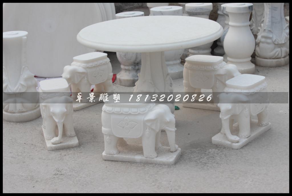 漢白玉石象桌象凳,石象桌象凳雕塑