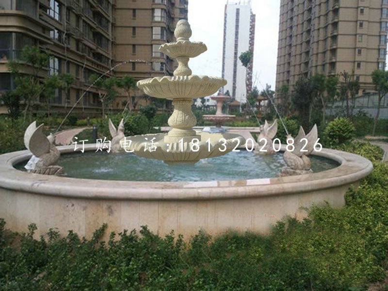 石雕噴泉是用石雕雕塑的外形,搭配上噴泉水,將裝飾的效果提高了不少。石雕噴泉分為:動物石雕噴泉、人物石雕噴泉等等,可以根據(jù)具體的需要定制大小不同的石雕噴泉。雕刻與噴泉相結(jié)合,能夠更好的起到裝飾的效果,單獨的噴泉難免顯得有些單一,搭配上精致的石雕雕塑就會顯得相得益彰。