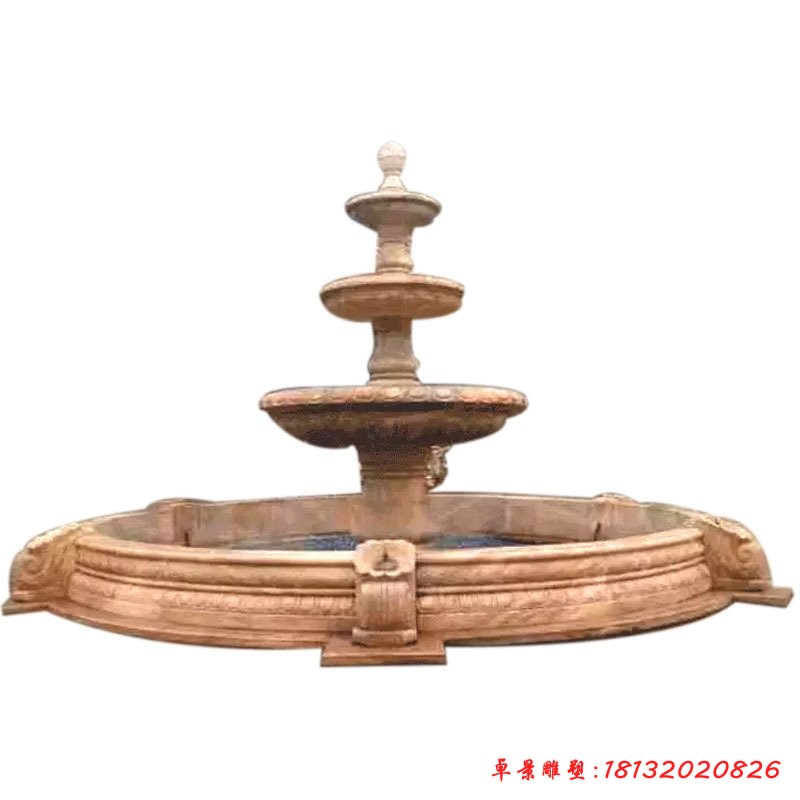 石雕三層歐式噴泉可用材質(zhì)不僅局限于晚霞紅,還可以是漢白玉石雕、大理石、砂巖、青石等,所使用的工藝也可以是仿古等,尺寸和適用場(chǎng)所也非固定不變,具體請(qǐng)電話咨詢。