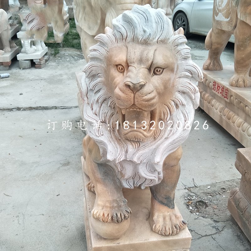 歐式獅子石雕,晚霞紅獅子擺件.jpg